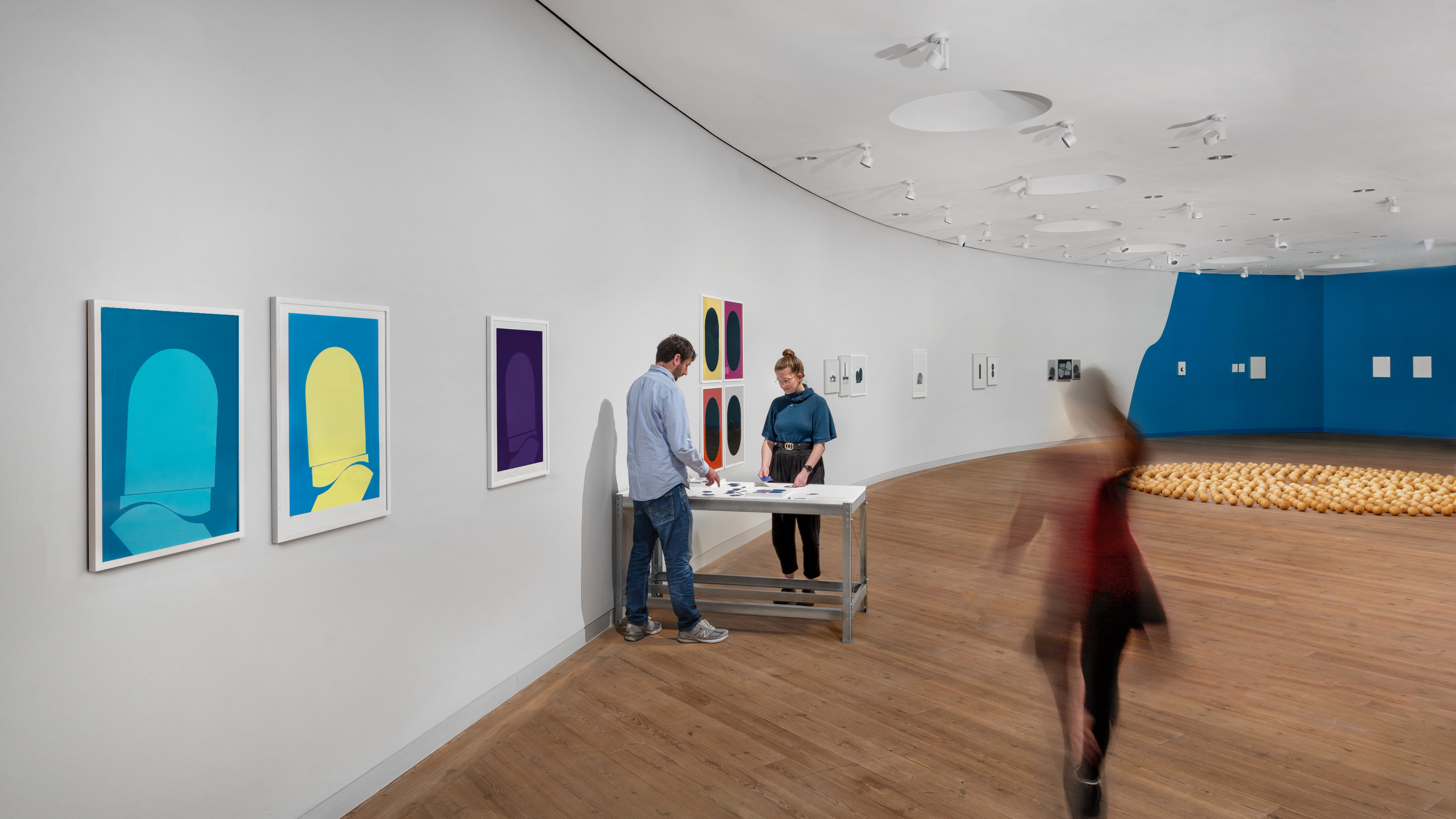 Diesen Gedanken weitertragend bieten zwei interaktiven Stationen innerhalb der Ausstellung die Gelegenheit selbst kreativ zu werden. Einerseits können mit den charakteristischen Formen Erich Lütkenhaus‘ eigene Kunstwerke entstehen oder beim Prägedruck dem eigenen Gestaltungswillen freien Lauf gelassen werden.